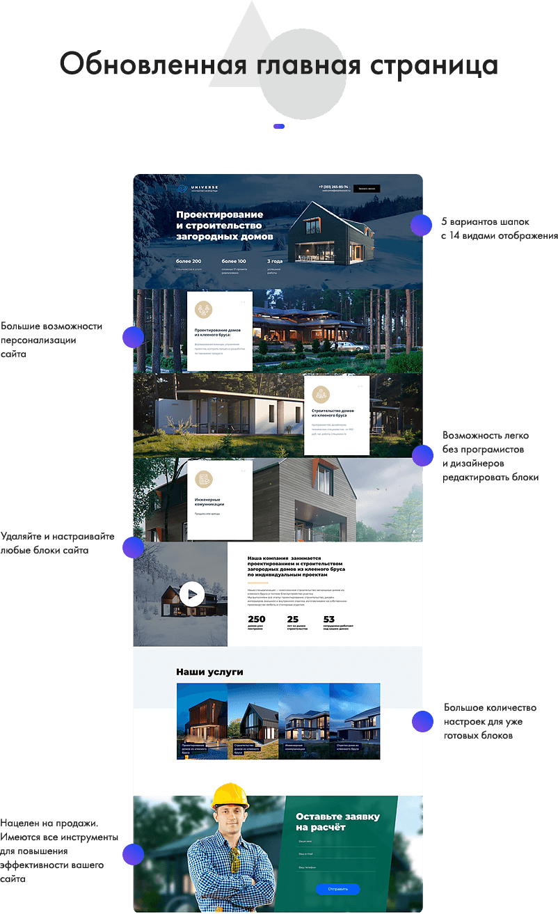 1. Как и все решения линейки INTEC:Universe, MaTilda имеет встроенный конструктор структуры и дизайна, который позволяет менять макет сайта без привлечения сторонних специалистов