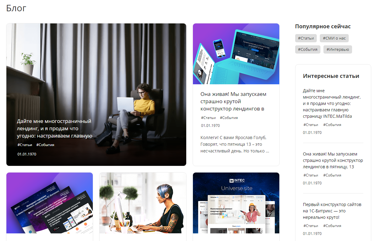 Дайте вашей компании голос, выберите тон, манеру говорить. Будет ли это иронично или беззаботно? Решите. Остальное корпоративный блог сделает за вас. Ну а если вы все равно решились завести блог, тогда ловите обновление линейки готовых корпоративных сайтов и интернет-магазинов INTEC:Universe, которое вам поможет. Мы добавили в блог возможность добавлять к публикациям теги. Это дополнительная навигация и дополнительный плюсик в вашу SEO-карму, так как тег помогает в продвижении вашего блога в поисковике.